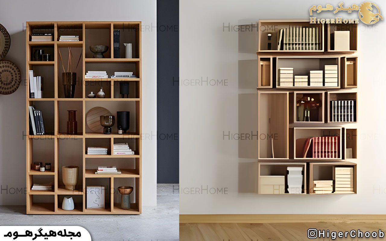 شلفها، باکسها و استندهای ساده چوبی به تنهایی یا در ترکیب با یکدیگر به شکل مدولار جزء مدلهای ترند ویترین چوبی هستند که به دیوار نصب میشوند و بهعنوان ویترینهای کوچک عمل میکنند. این مدلها به شما این امکان را میدهند تا اشیاء دکوری یا کتابها را به صورت هنری و زیبایی روی دیوار قرار دهید و حتی در ورودیها، سرویسهای بهداشتی، اتاقخواب و… از آنها استفاده کنید.
